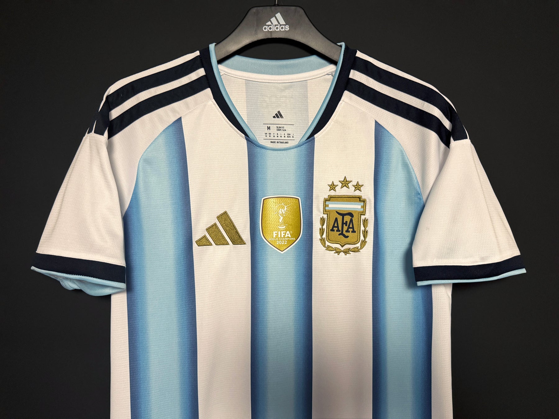 Denna Argentinas hemmatröja har en klassisk och ikonisk design för fans som vill visa sitt stöd med stolthet. Tillverkad av lätt och andningsbart funktionsmaterial som ger hög komfort under matchdagar och i vardagen. De välkända ljusblå och vita ränderna tillsammans med det officiella Argentina emblemet skapar en tidlös och sportig look inspirerad av lagets tradition. Perfekt att bära på läktaren, på planen eller som stilren vardagsklädsel.