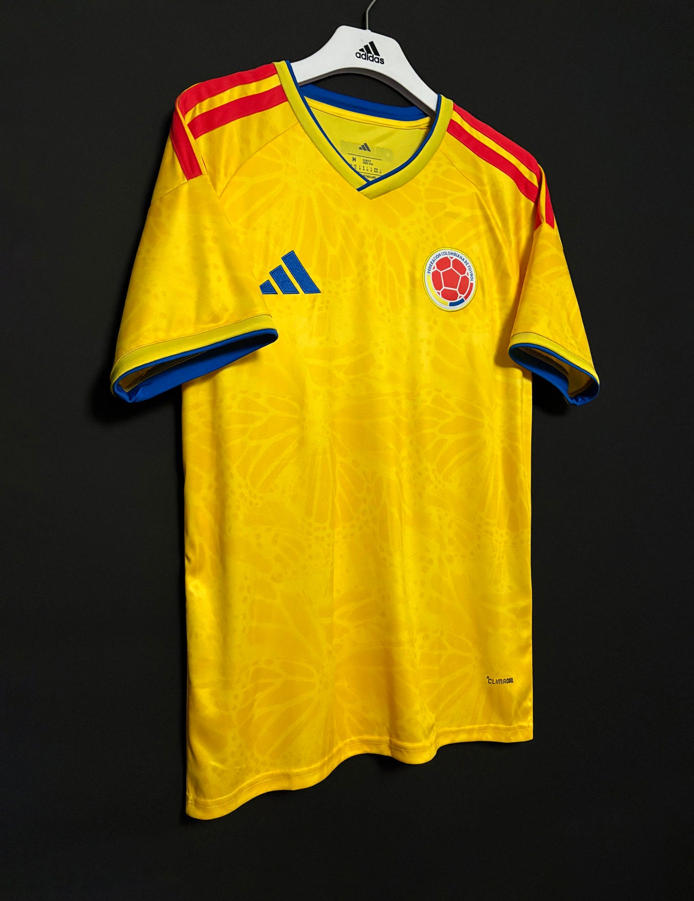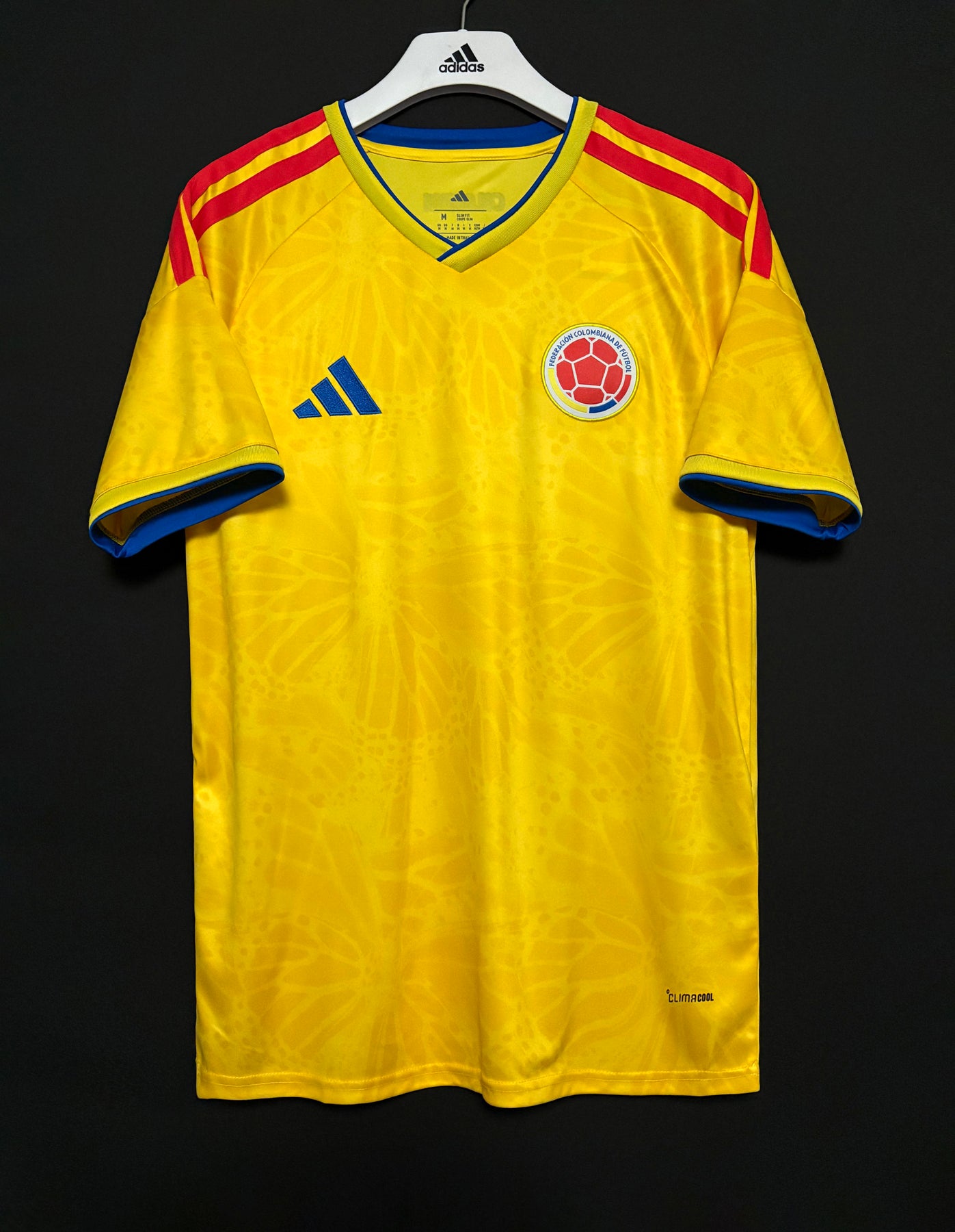 Denna Colombias hemmatröja har en livlig och klassisk design för fans som vill visa sitt stöd med stolthet. Tillverkad av lätt och andningsbart funktionsmaterial som ger hög komfort under matchdagar och i vardagen. Den klara gula basen med röda och blå detaljer samt det officiella Colombia emblemet skapar en energisk och sportig look inspirerad av landets nationella färger. Perfekt att bära på läktaren, på planen eller som stilren vardagsklädsel.