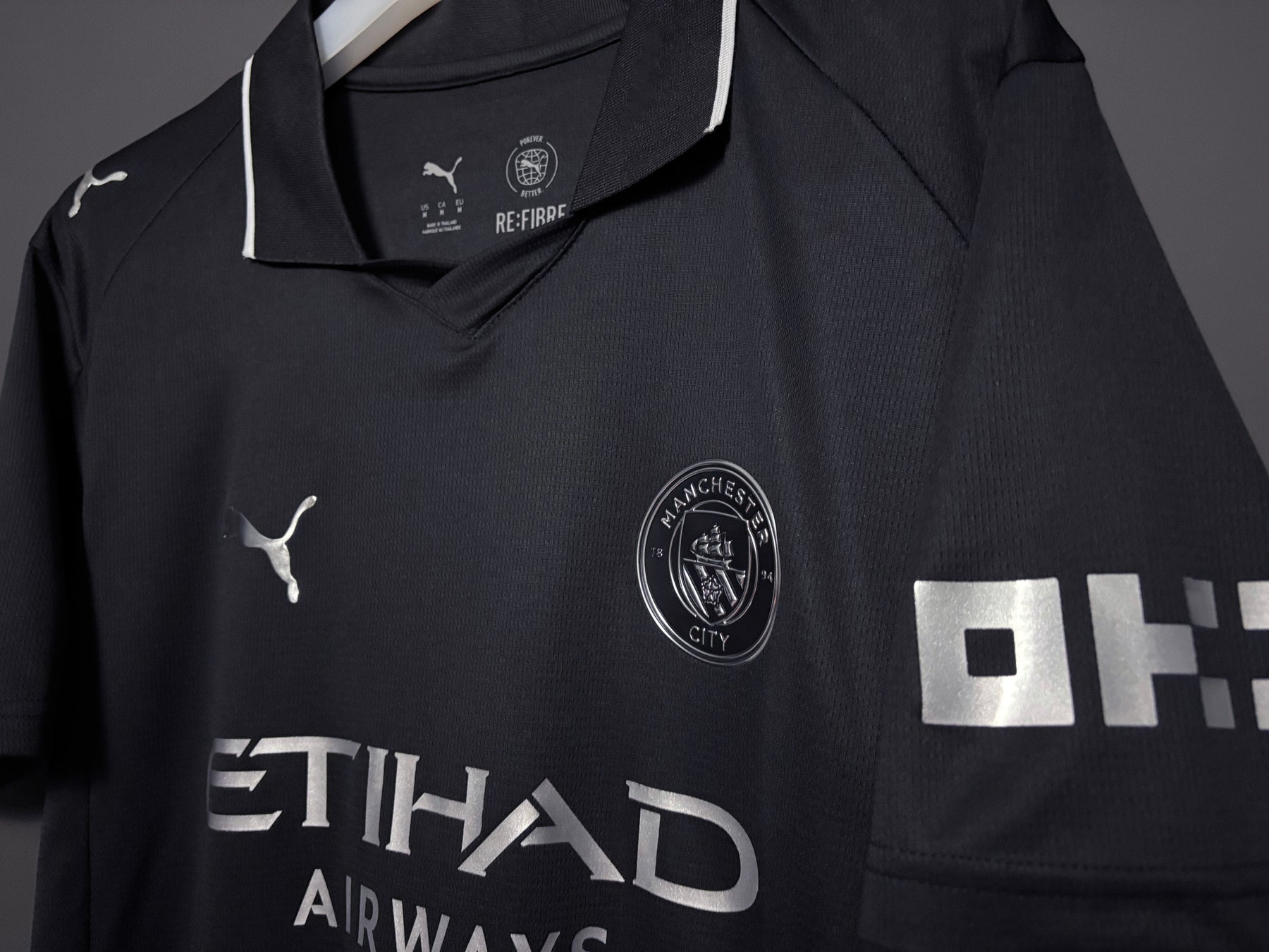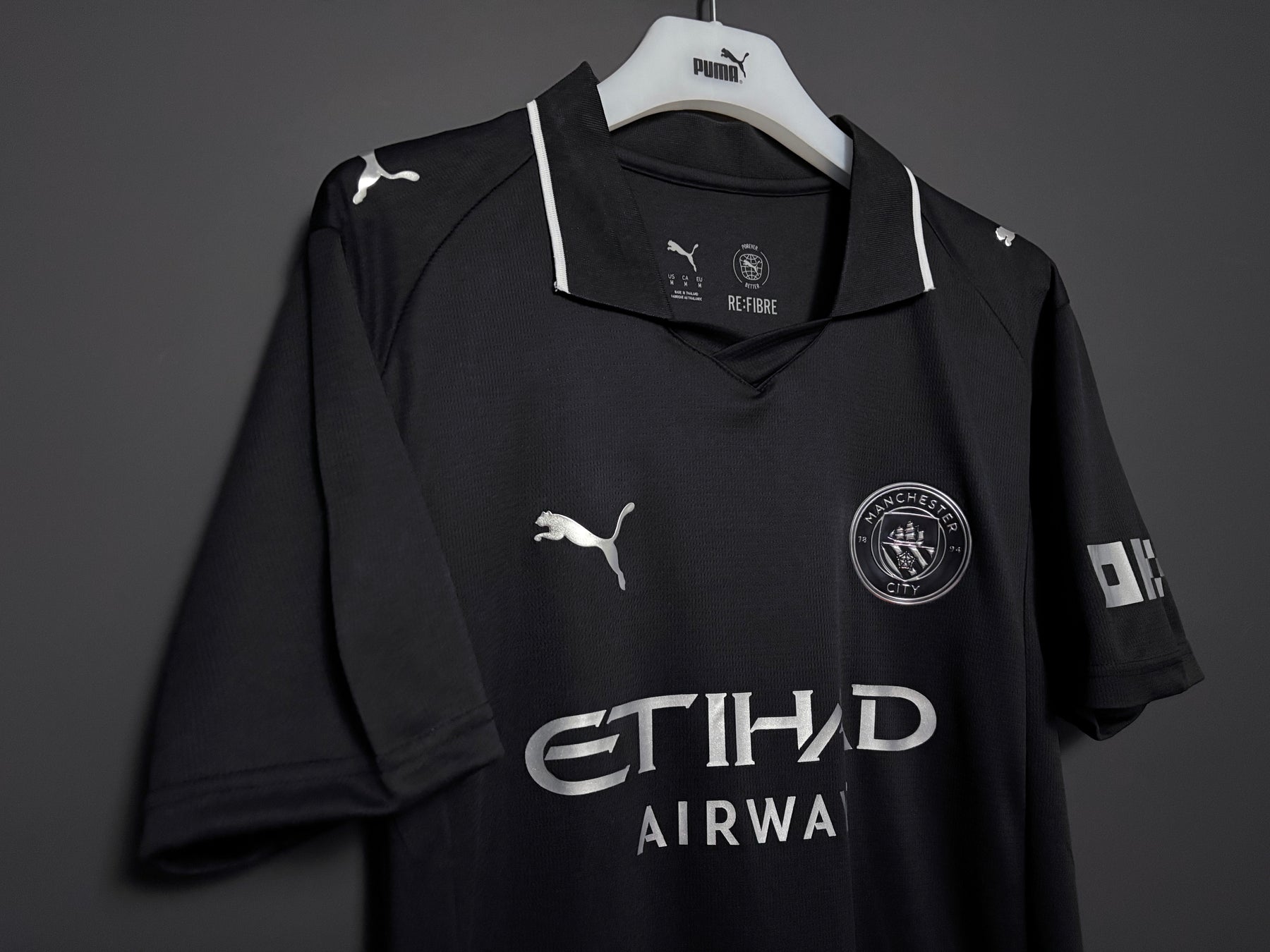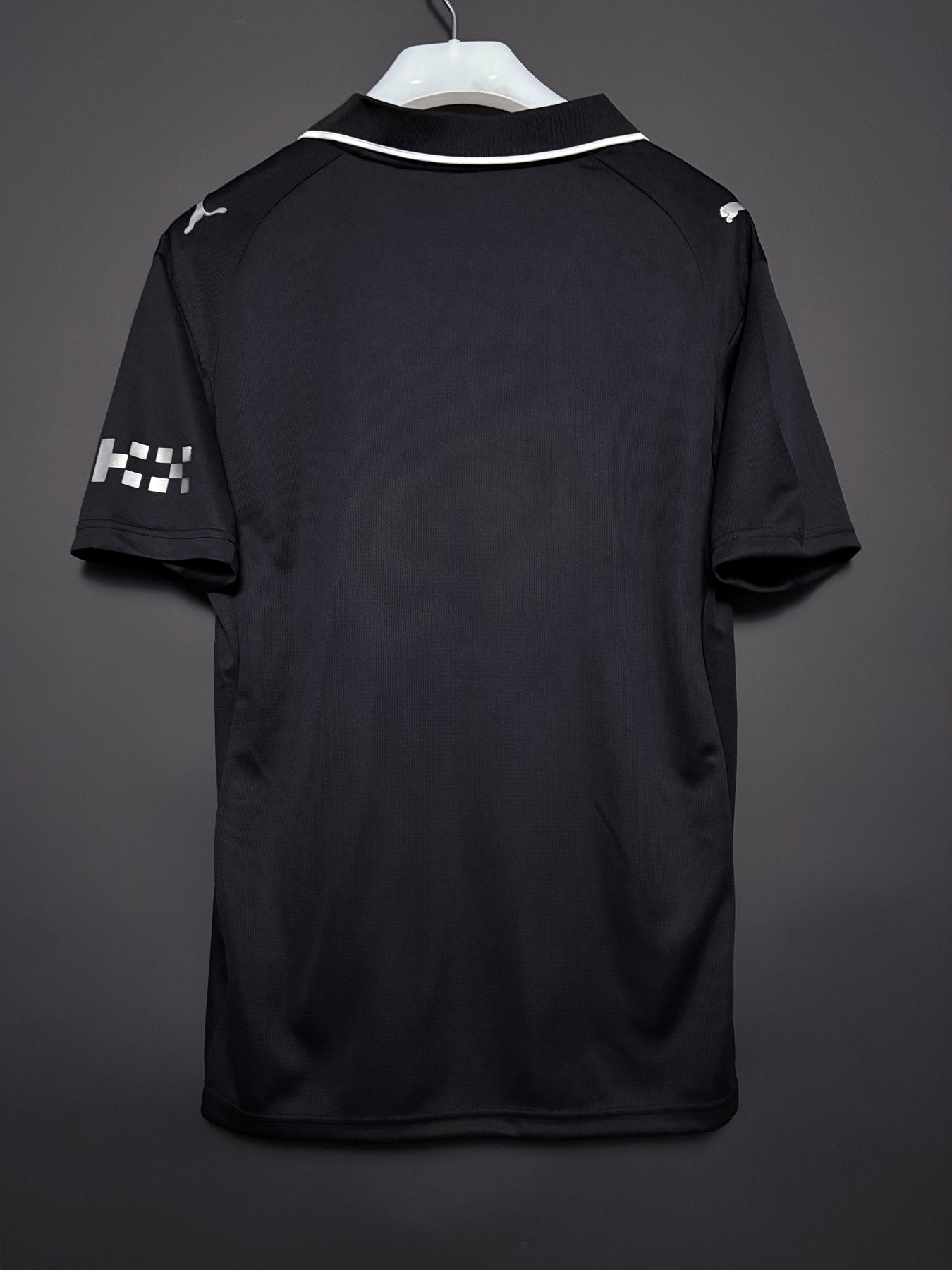 Manchester Citys bortatröja har en stilren svart design med subtila detaljer som ger ett modernt och kraftfullt uttryck. De ljusa logotyperna och den klassiska kragen skapar en elegant kontrast och ger tröjan en exklusiv look. Tröjan är tillverkad i lätt och andningsbart material som ger hög komfort både under match och till vardags.