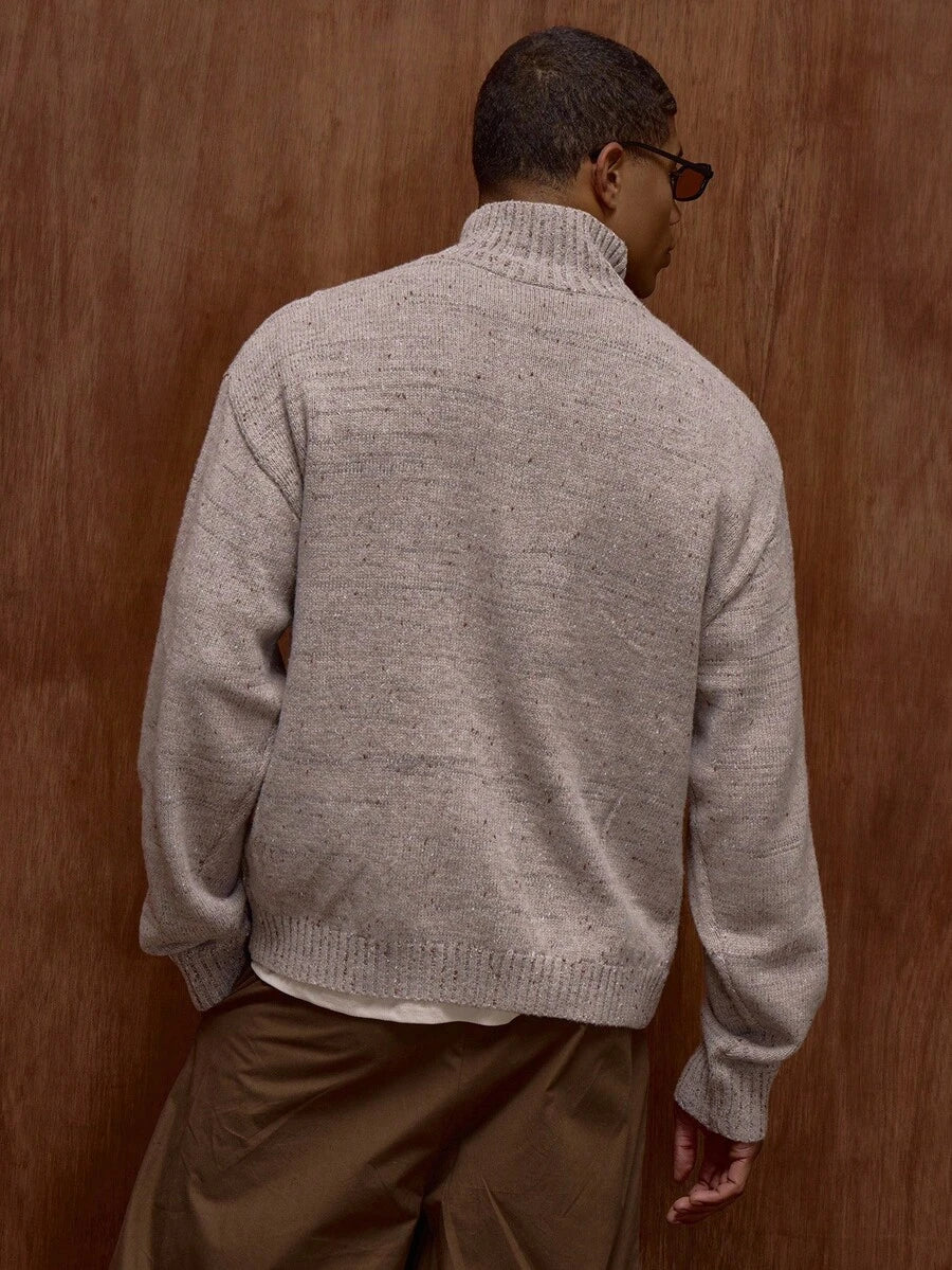 Zippad cardigan med ståkrage och prickmönster